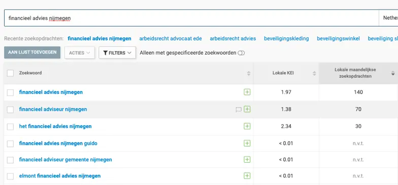 Hierdoor krijg je weer helemaal andere zoekwoorden te zien en kun je jouw zoekwoorden-lijst uitbreiden!