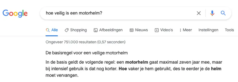 Als we kijken naar het onderwerp ‘motorkleding’, dan zouden dit vragen kunnen zijn zoals: