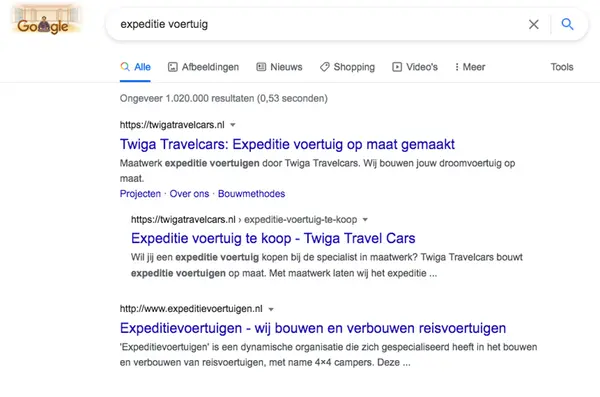 Twiga Travelcars en Go Online realiseren een #1 positie in Google voor zoekopdrachten gericht op expeditie voertuigen.